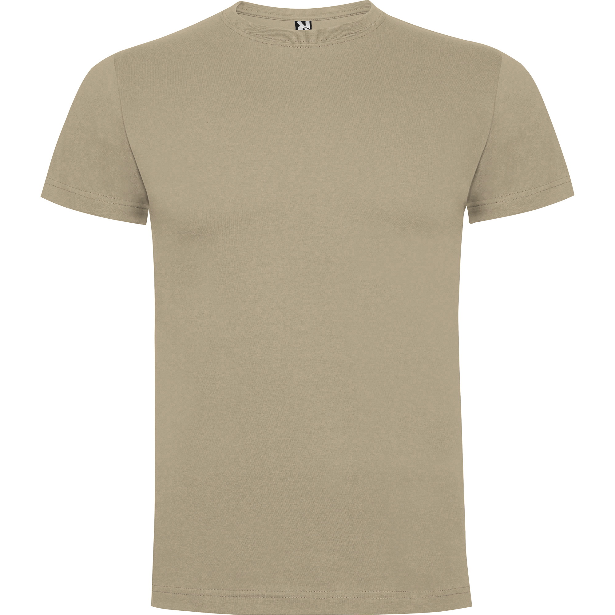 Camiseta de manga corta con costuras laterales. Cuello redondo en canalé 1x1 (4 capas). Cubrecosturas en cuello del mismo tejido.