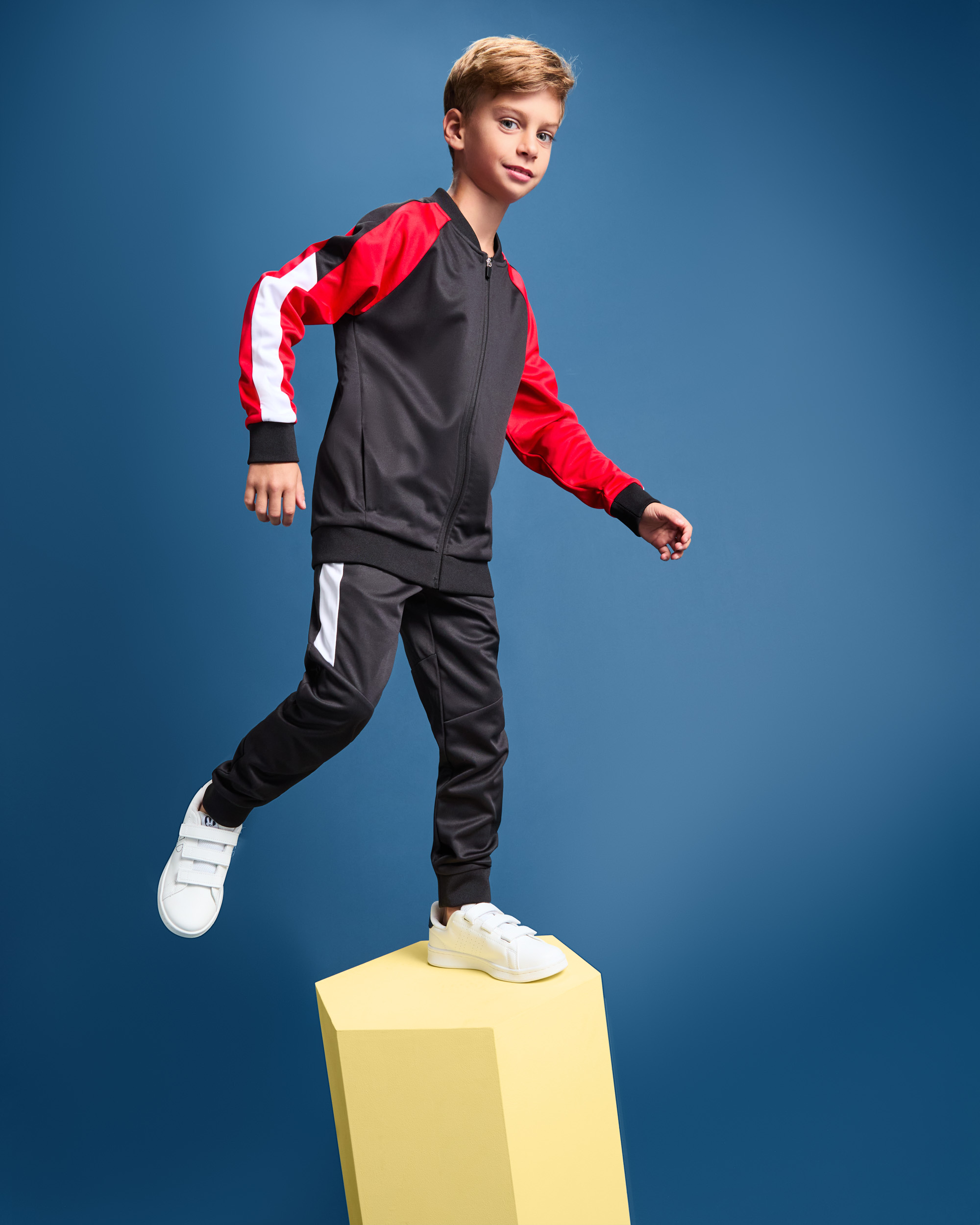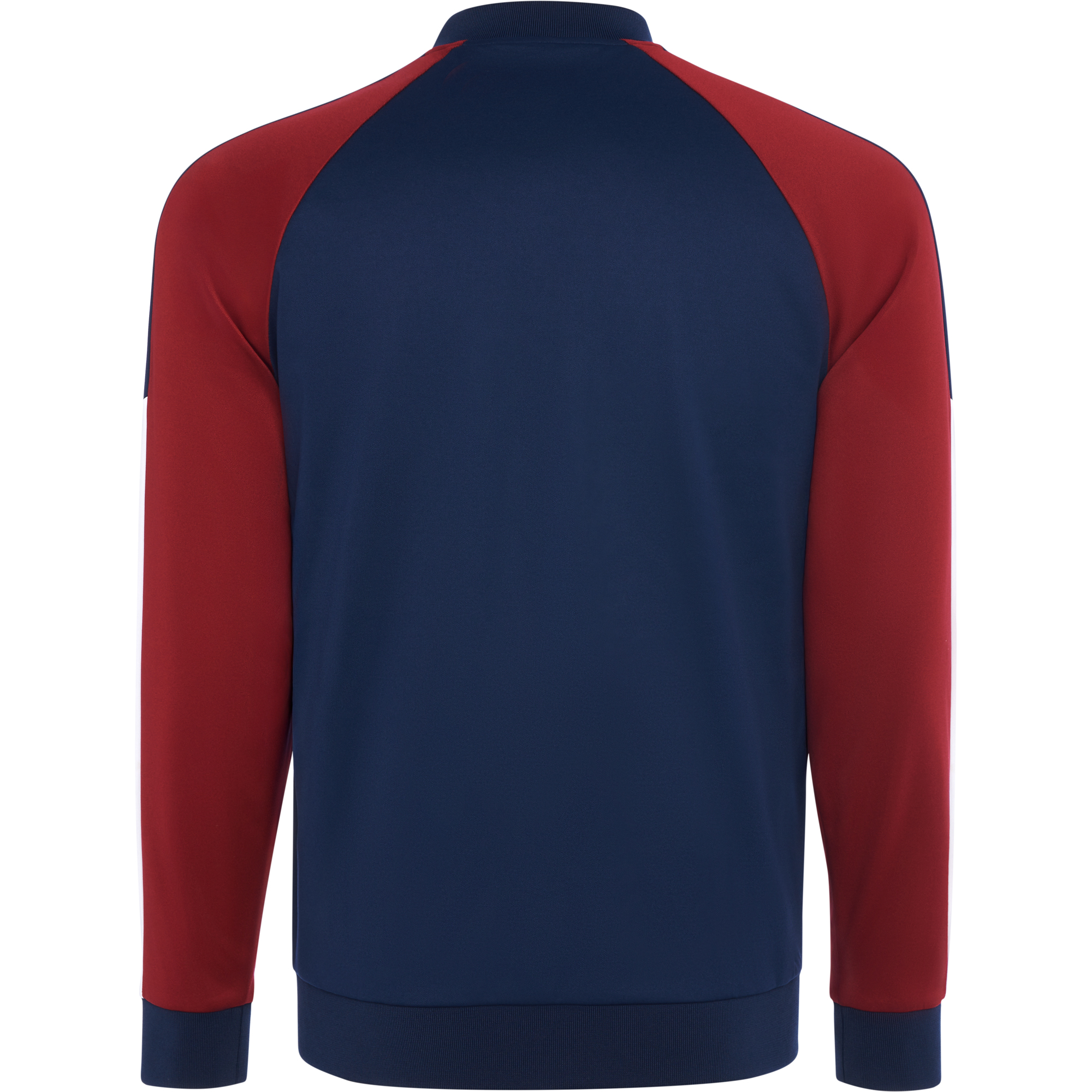 Chaqueta deportiva manga ranglán. Cremallera frontal. Dos bolsillos laterales con cremallera. Rib 1x1 en cuello, puños y bajo. Cubrecosturas a contraste. Mangas a contraste de color con bandas a lo largo de la manga. Opciones de color para combinar con pantalón URUS.