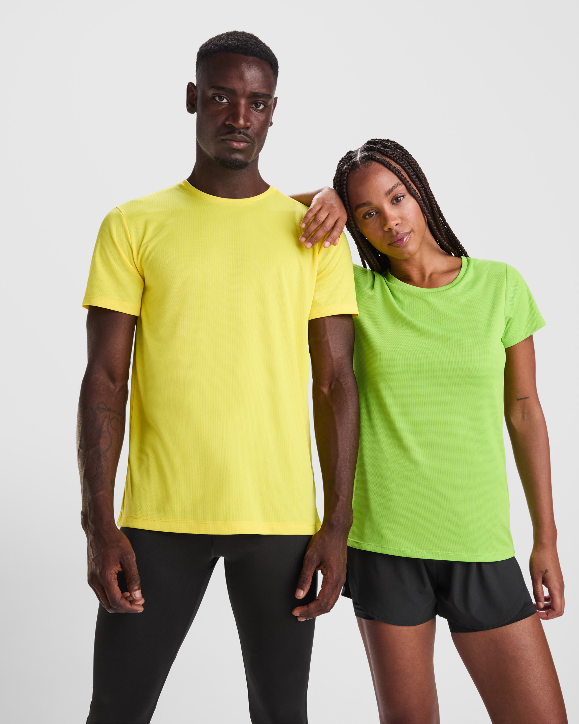 Camiseta técnica manga corta entallada transpirable. Poliéster reciclado. Roly Control Dry. Cuello redondo del y cubrecosturas mismo tejido al tono. Etiqueta tejida ECO. Certificado GRS.