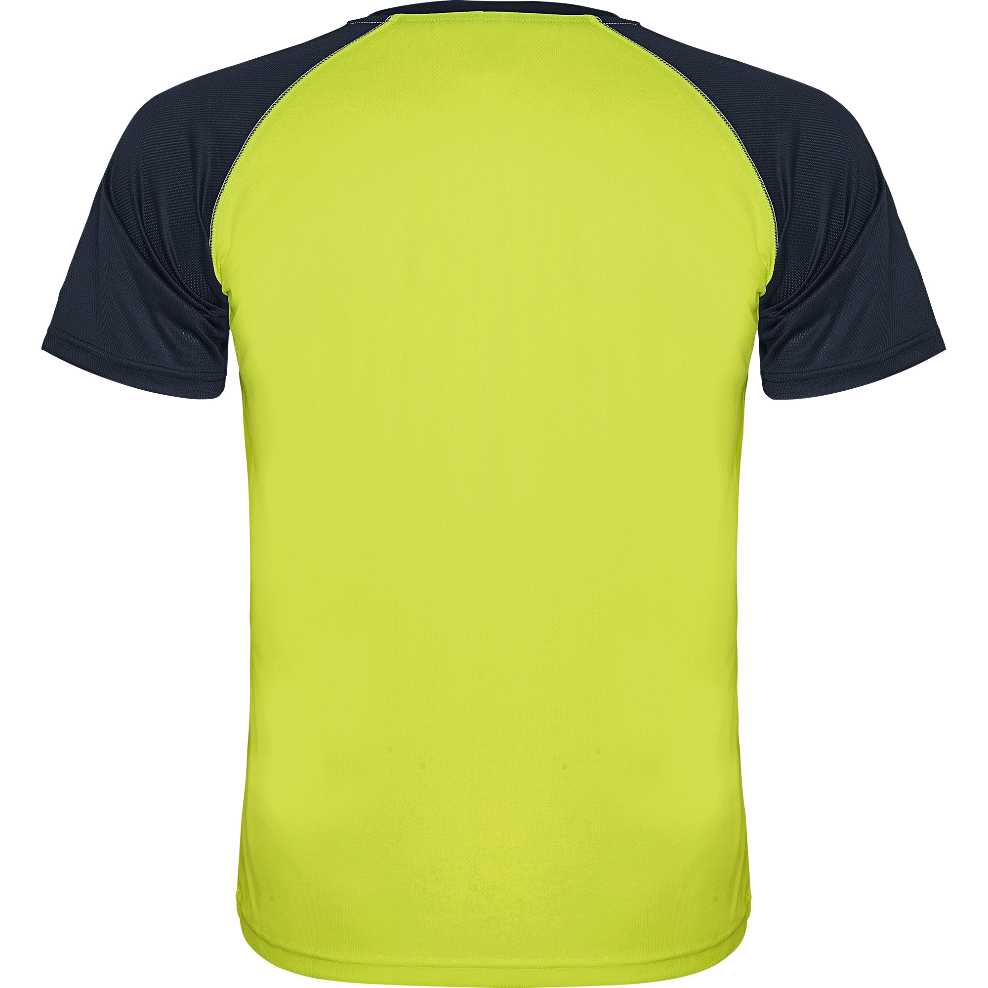 Camiseta técnica manga ranglán unisex transpirable bicolor. Combinación de color. Cuello redondo y cubrecosturas del tejido de las mangas.