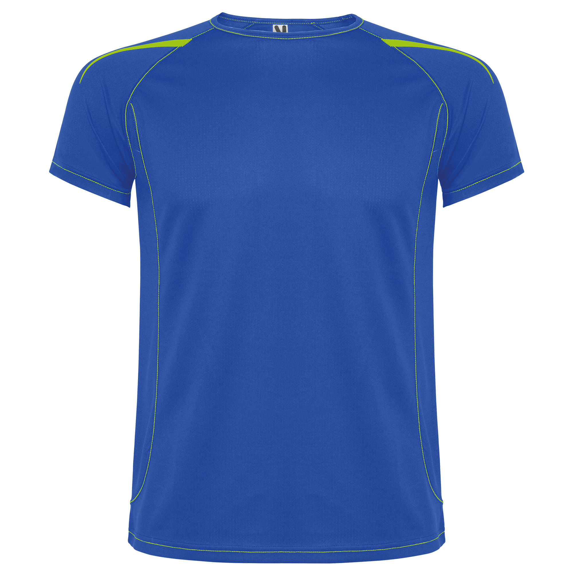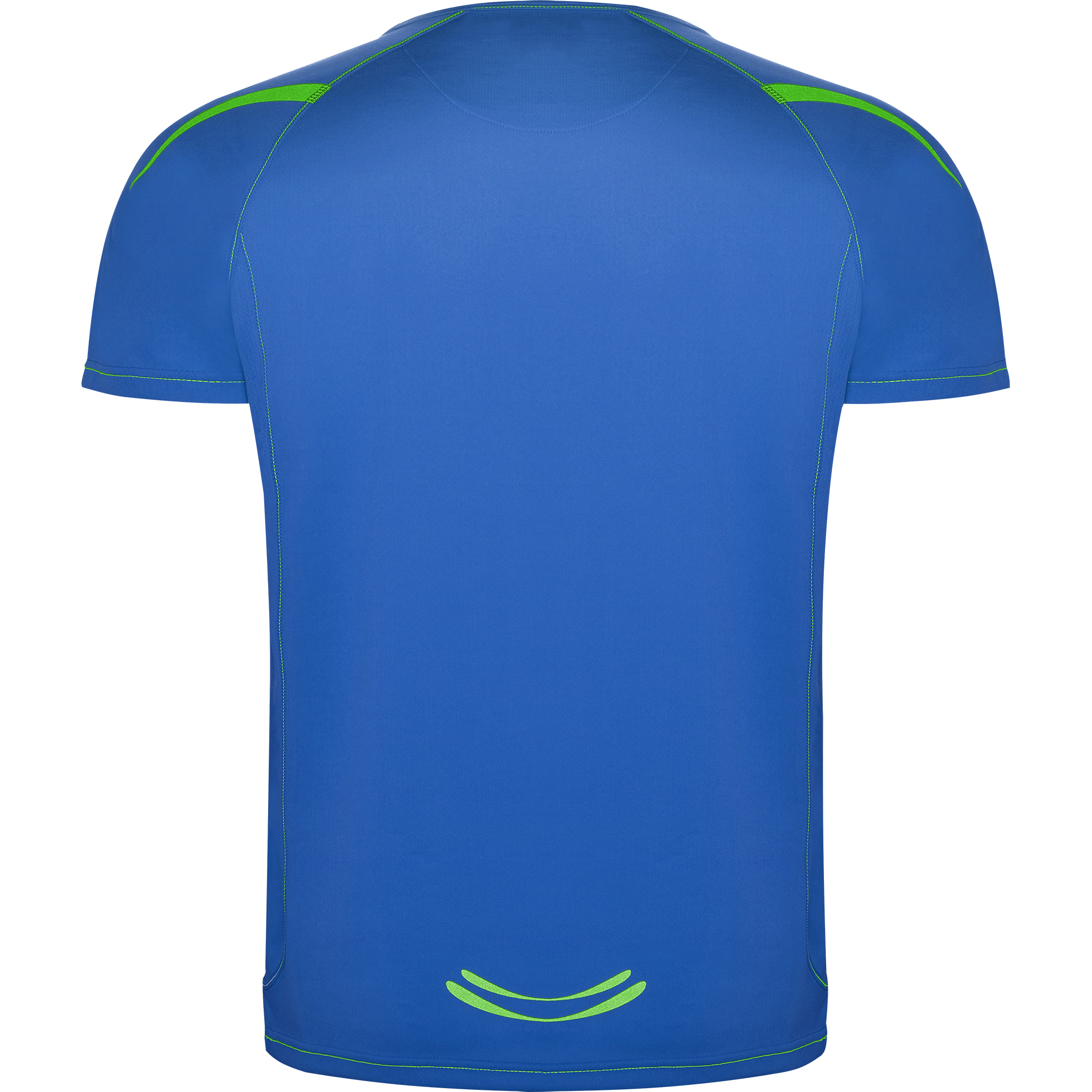Camiseta técnica manga ranglán unisex transpirable. Costuras a contraste. Cuello ribeteado en el mismo tejido. Paneles laterales. Detalles reflectantes en hombros en todos los colores menos en negro y royal, que es amarillo flúor.